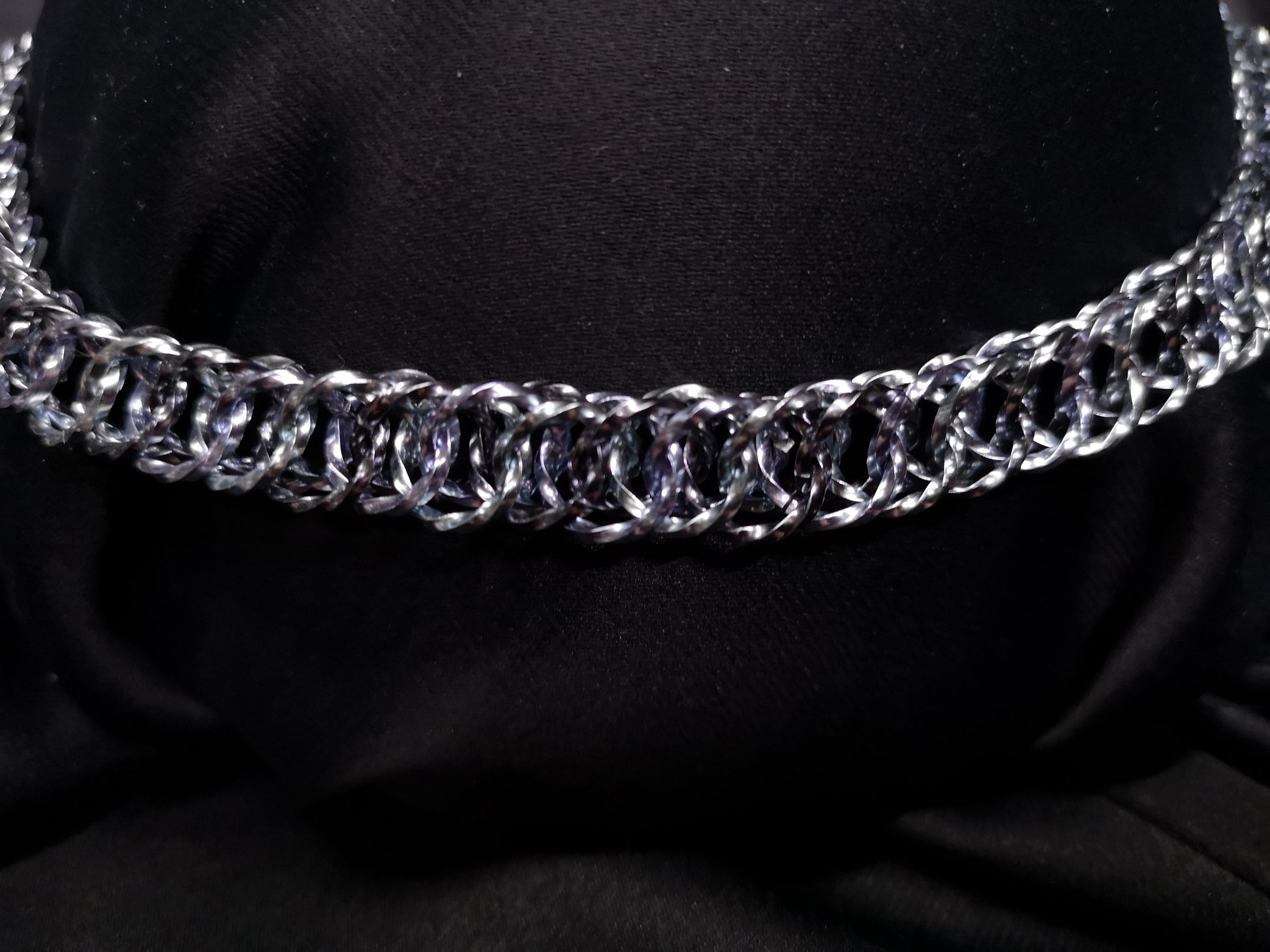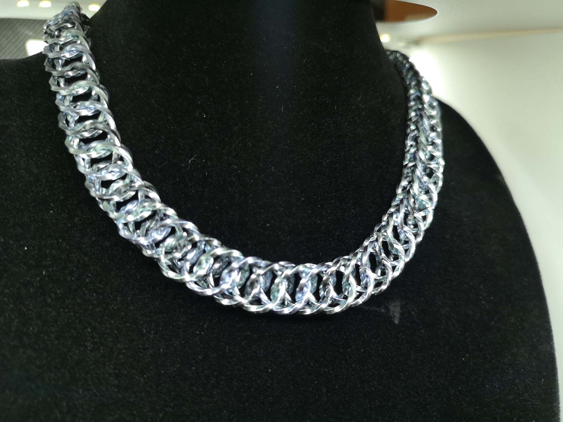 Gorgeous choker in sparkly silver aluminum twisted square wire.